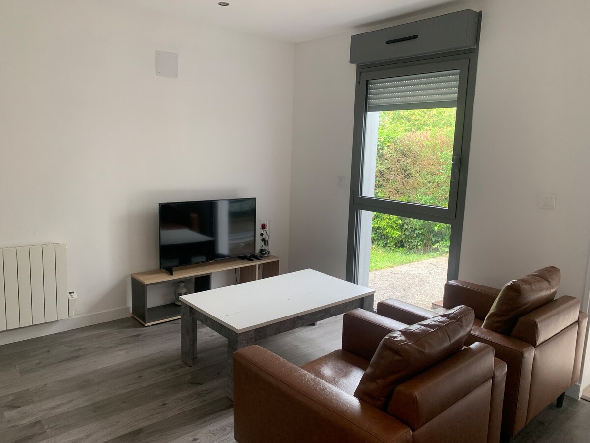 街中の田舎のワンルーム。静かな個人所有地にあります。専用駐車場、花の咲くテラス。独立した玄関、広々としたシャワールーム、トイレ、洗面台。キッチン付きのメインルーム。大きなベッド、ダブルサイズのマットレス2x80cm。 必要に応じてベビー用折りたたみベッド。インターネットテレビ。 大学の近く、SNCF駅から2.5km。400mのところにバス停があり、駅、大学、ショッピングセンターへの直通便があります。 シーツ、タオルが用意されています。