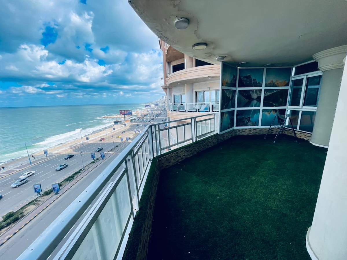 アレクサンドリアの海を眺めることができる2寝室の最前列のアパート