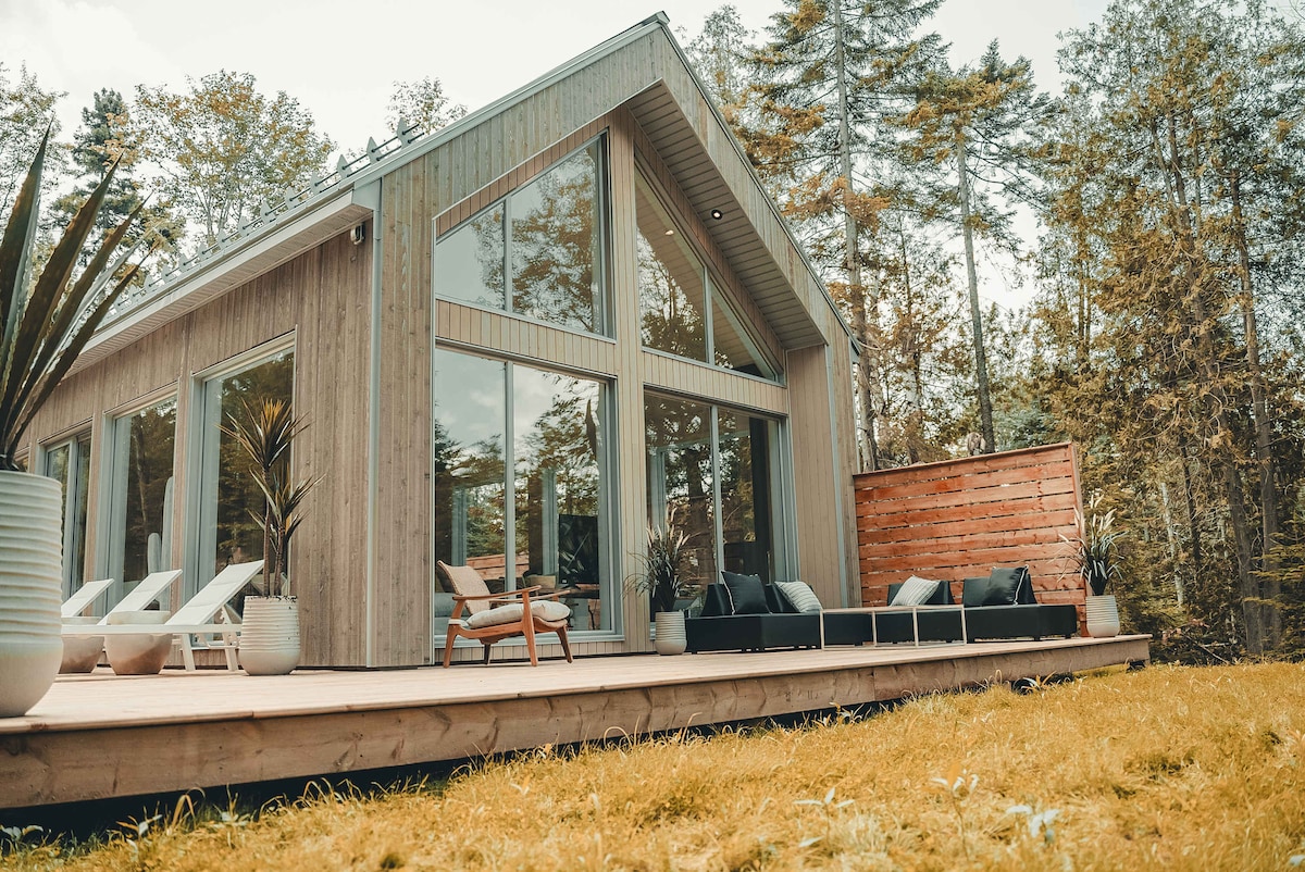 平和と人とのつながりを大切にデザインされた、現代的な山岳ヴィラ「Zen Houses 3」と「Zen Houses 7」に逃避行しましょう。どちらも明るくモダンなリビングスペース、設備の整ったキッチン、魅力的な寝室を備えています。専用スパでリラックスしたり、ファイヤーピットのそばで集まったり、周囲の自然の静けさを楽しむことができます。ご家族やグループでのご利用に最適です。両方の宿泊施設を合わせて、ローレンシャン山脈の中心部で最大20人のゲストをお迎えし、思い出に残る休暇をお過ごしいただけます。
