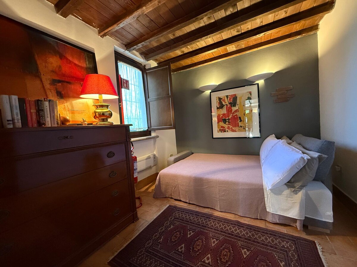 Nell’antico borgo di Vallerano, un ampio e luminoso appartamento composto da due ampie stanze, ingresso con piccolo ripostiglio e bagno, che una architetto-fotografa ha progettato per se stessa, arredato con cura per i particolari e per l’organizzazione degli spazi. Un ambiente accogliente e curato dove rilassarsi, dedicarsi alle proprie attività e partire per le escursioni nella Tuscia, consultando le guide e le informazioni sui principali luoghi di interesse disponibili nell'appartamento.