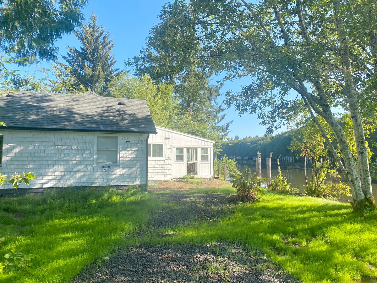 Westport is 4 minutes! The beach is 5 minutes! Fantastic sea-sations are 0 minutes away! Storms, sunsets and sea-life. Dig razor clams nearby. 1 bedroom with queen bed. Double couch in living room. Large full bath. Quiet, private, clean 1940's cottage above the beautiful Elk River estuary. 180 degree waterfront view SE to NW. Covered patio set up to relax outside. Fully fenced for kids and pets. Accommodates 1-3 guests. Spotless cleaning between guests for better peace of mind for everybody.