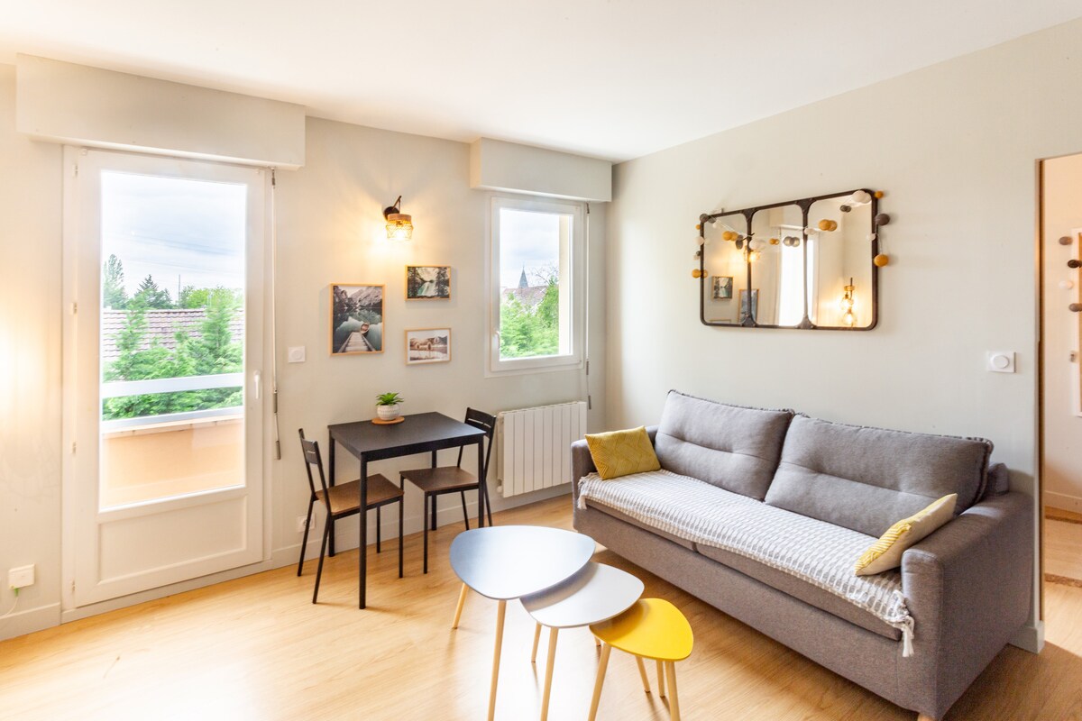 Bienvenue chez vous ! Nous avons pris grand soin d'aménager et décorer cet appartement pour qu'il soit le plus agréable et confortable possible. Situé au 2ème étage (sans ascenseur) d'une résidence sécurisée avec arrivée autonome, l'appartement est à 150m du centre et de ses commodités. Il accueillera jusqu'à 4 voyageurs, linge de lit et de toilette inclus. Pour votre plus grand plaisir, les lits seront faits à l'arrivée. Nous espérons que vous passerez un très bon séjour parmi nous !