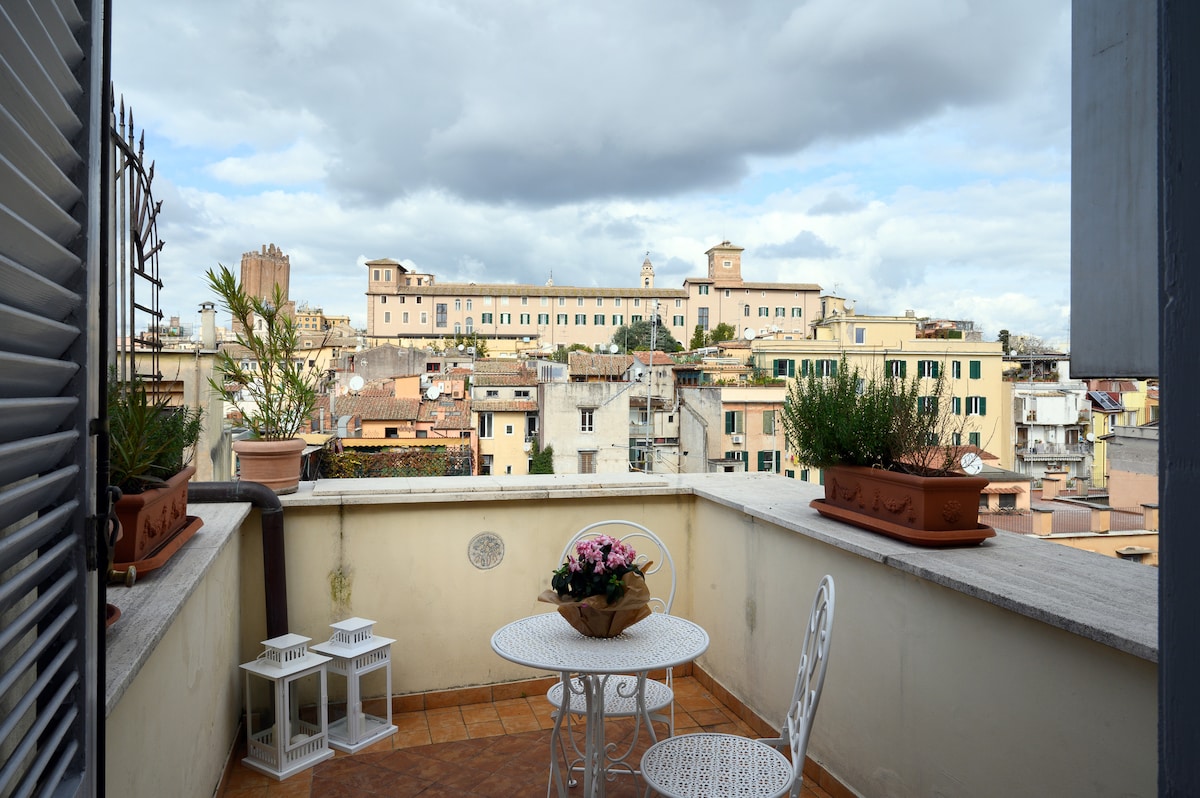 ローマ中心部にある魅力的な4名様用アパート(テラス付き)