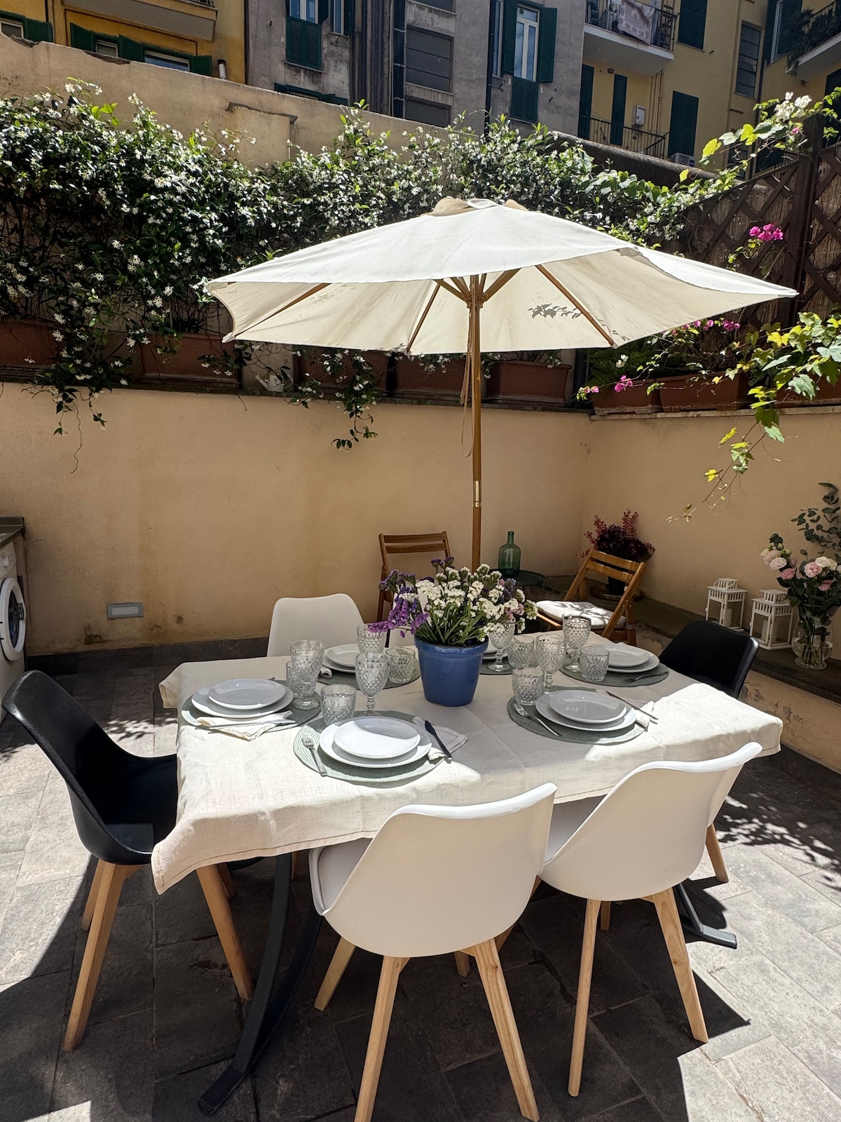 The apartment is located in the HEART of the Imperial Forums, HISTORICAL and ARCHAEOLOGICAL area, two minutes walk from the Colosseum, Piazza Venezia, Campidoglio, Trevi Fountain, Piazza di Spagna. The apartment is located in the vault of the ancient "Mater Boni Consilii" Chapel of 1834 with overlooking UNIQUE on the Markets of Trajan, has an INDEPENDENT, EXCLUSIVE, PRIVATE entrance, is perfectly connected by public transport, has a DELIGHTFUL PRIVATE PATIO to enjoy a good glass of wine.