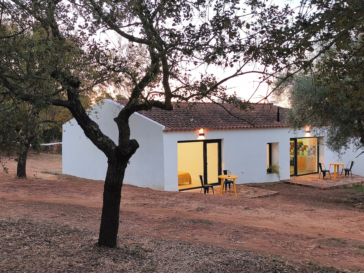 約4ヘクタールの平穏で自然なアレンテージョの丘陵にある居心地の良い田舎の家。 セラ・デ・サン・マメデ自然公園の中心部に位置し、樫、オリーブ、樫、果樹などの多種多様な在来植物に囲まれています。セヴェル川と、数多くの滝がある小川が流れており、泳ぐことができます。また、古い灌漑タンクを改装した自然のプールが2つあります。