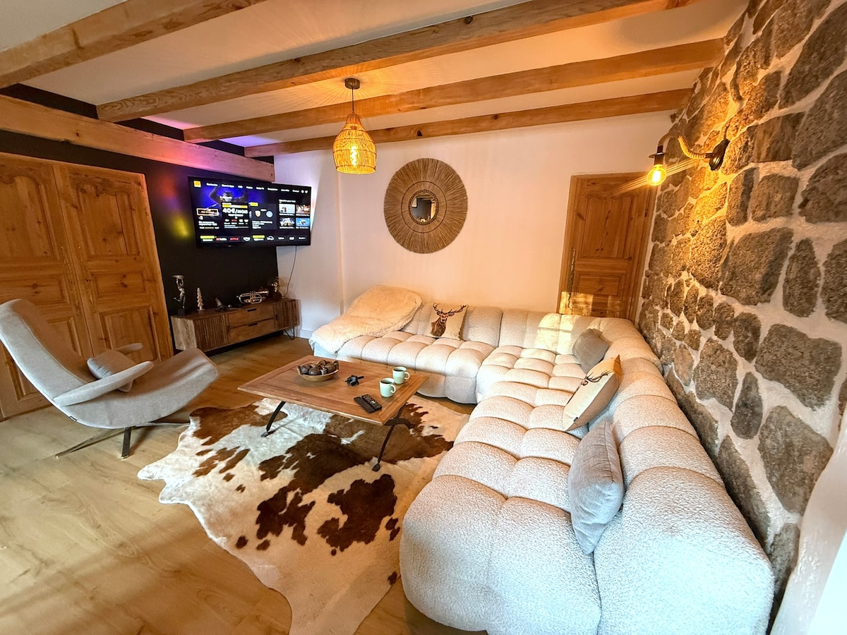 明るく改装されたての60平方メートルの屋根裏部屋で、この快適でリラックスできるコクーンは、モンロゼールの麓で過ごす週末や平和な1週間に最適です。 スティーブンソン通りとショップは1 km先にあります。(食料品店、パン屋、肉屋など) 2つの寝室と広いリビングルームで構成されたこのアパートは、設備が整っています。オーブン(配達待ち)、最新世代の洗濯機、イタリア製シャワー、セラミック製コンロ、レザー製ソファベッド、薪ストーブが備わっています。
