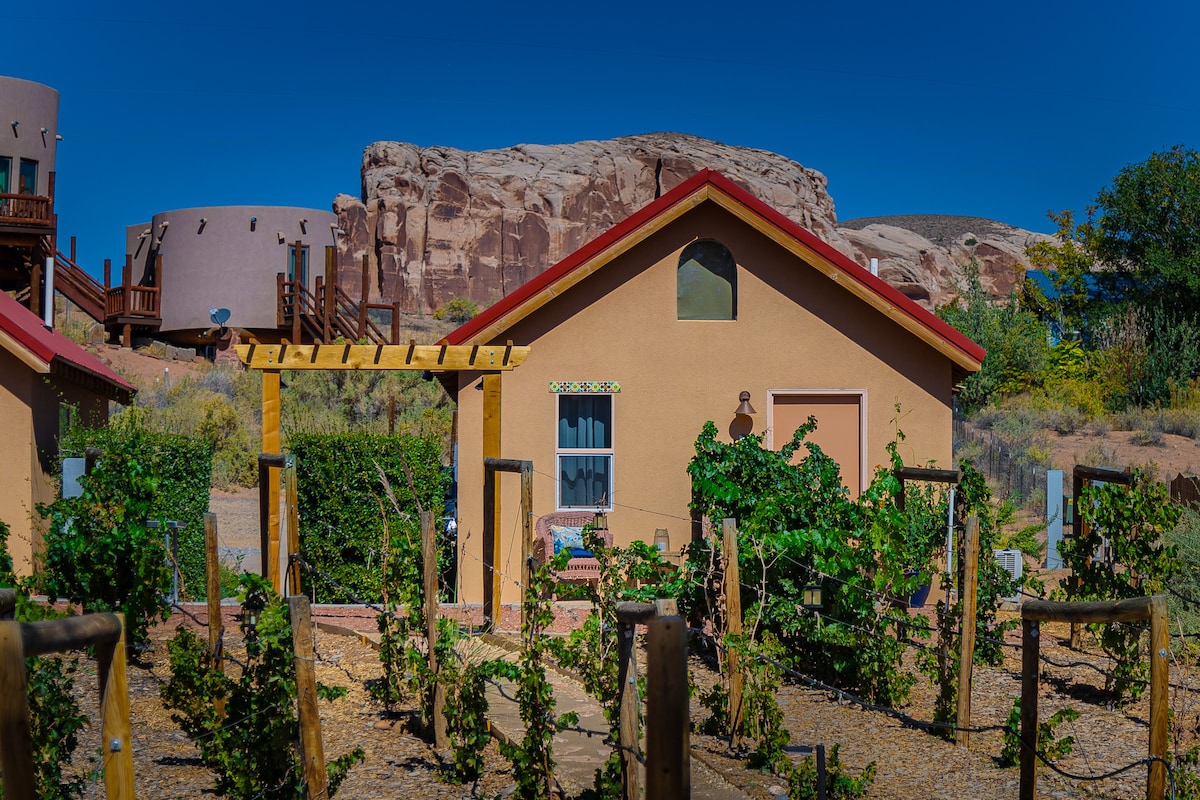 徒歩、ラフト、または自転車で1日探索した後に、400平方フィート、1ベッドルーム、1バスルームの家でリラックスしてください! 次の冒険のためにおいしい元気の出る食事を準備できるように、アメニティが揃ったフルキッチンを備えています! ファイヤーピットを備えた屋外エンターテイメントスペースと、壮大な日の出を眺めることができる静かな庭園が完備されています! ユタ州ブラフは暗い空の認定を受けており、(満月の夜でも)星はがっかりさせません! ベアーズ・イヤーズ国定記念物への入り口。