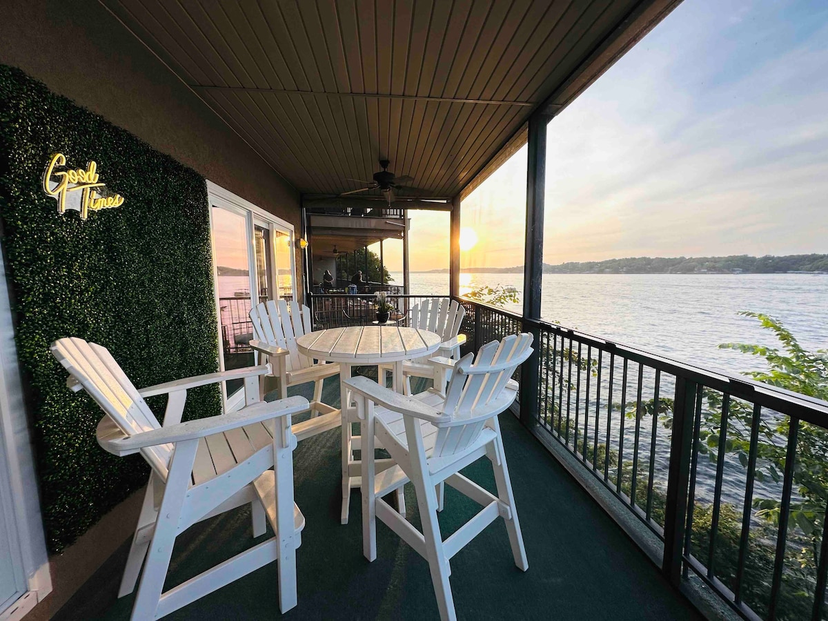オザーク湖の湖畔にある素晴らしい景色のコンドミニアム。 改装済みの2ベッドルームのコンドミニアム(キングベッド1台、クイーンベッド1台)でリラックス。クイーンサイズのソファベッド2台(6名様用)、2020年に改装されたキッチンには必要なものがすべて揃っています。暖炉があるので、涼しい日には快適です! コンドミニアムは有名なバグナルダムストリップ、ショッピング、レストランの近くにあります。 コンドミニアムは、家族や友人と一緒に泳いだり、ボートを楽しんだり、グリルを使ったり、ゲームをしたり、釣りをしたりするのに最適な場所です。湖はわずか数歩先にあります。ペット不可!