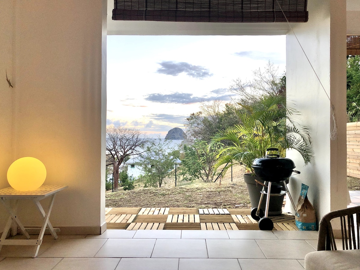最近建てられた住宅内にある、エアコン付きの素敵なワンルームで、共用のオーバーフロープールがあります。アパートには広いテラスがあり、目覚めたらカリブ海、ロシェ・デュ・ダイアマン、モルヌ・ラルシェの素晴らしい景色を眺めながら朝食をとることができます。ビーチとダイアモンドの村は徒歩約10分です(Airbnbによって自動的に表示されている3分ではありません)