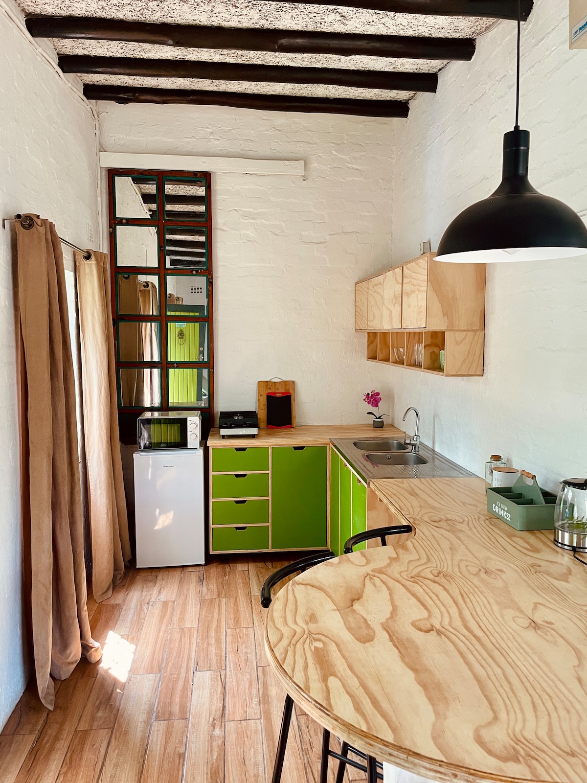 ダーバンの中心部に位置する、平和で、プライベートで、広々とした、独立したコテージです。 設備の整った大きなキッチン、ガスコンロ(オーブンなし)、洗濯機、食器洗い機が備わっており、長期滞在に適しています。 🔸️カップルや出張の方に最適です。 🔸️キングサイズベッド(2つのシングルに分割可能)は住宅街にあります。 🔸️モダンなウォークインレインシャワー。 🔸️仕事用スペース(USB充電ポート2つ内蔵)を備えたオープンプランのリビングルーム 🔸️エアコン 🔸️高速Wi-Fi、スマートテレビ、Netflix