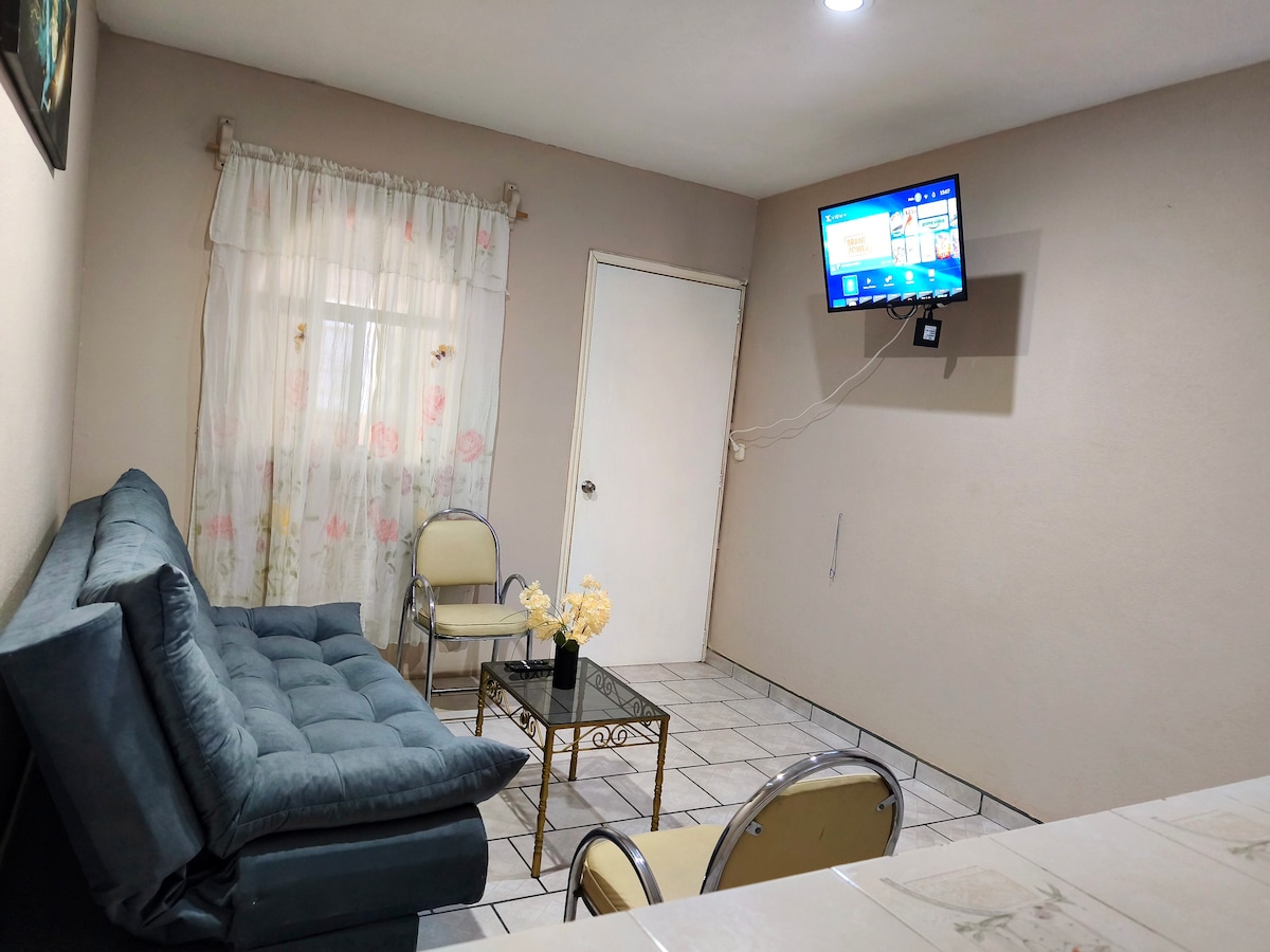 このユニークでフレンドリーな宿泊先で忘れられない思い出を作りましょう。静かで清潔!上質の寝具、広々とした空間、リビングにソファベッド。 中心部にあり、立地は抜群です。3階にあり、基本的なサービスがあり、無料の駅、追加料金での清掃サービス、OXXOなどのコンビニ、スーパー、タコス屋、カフェまで徒歩です!