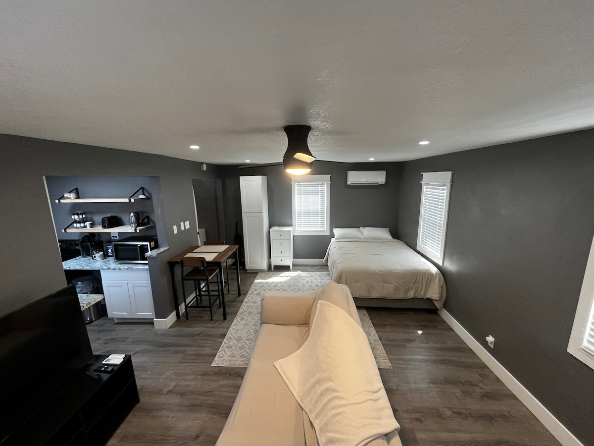 こちらの静かでおしゃれなお部屋で、のんびりとおくつろぎください。 ジャグジーでリラックスしたり、焚き火台とバーベキューエリアでスモアを楽しんだり、ソファでくつろいでNetflixを楽しんだり、くつろぎましょう!