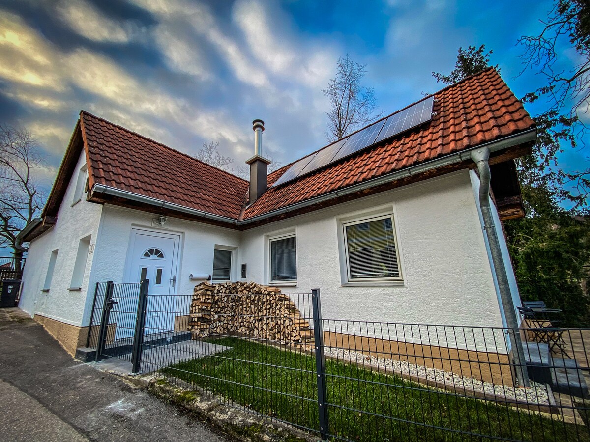 ソネンハウス あなたとあなたの仲間は、リラックスしたり仕事をしたりするための静かなオアシスが好きですか? それなら、ここがぴったりです。 池のそばの快適な木造の家には、素敵なサウナ、約1000m2の庭、屋外キッチン、さまざまなバーベキューがあります。バスローブを着て、ノートパソコンを起動しますか?さあ始めましょう! ご希望の日が予約できない場合は、お問い合わせください! 料金には、最終清掃、宿泊税、サウナ、バーベキュースペシャルが含まれています。正しいゲスト数に注意してください。