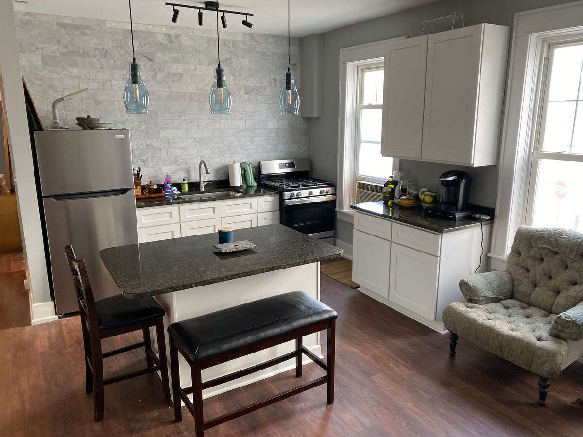 この1階のアパートは、モーガンタウンのダウンタウンまで徒歩20分で行け、市バスの路線上にあります。ホワイトパークのトレイルは1ブロック先にあり、モーガンタウン市営アイスリンクの近くです。1.6キロ以内に食料品店が2軒あり、素晴らしい料理と冷たいビールを楽しめる地元の居酒屋もあります。(1ブロック先)アパートは昼は明るく、夜は居心地が良いです。クイーンベッド。新鮮で清潔で広々としています。フルキッチンと洗濯機と乾燥機を備えたユーティリティルーム。専用玄関と屋外リビングスペース。