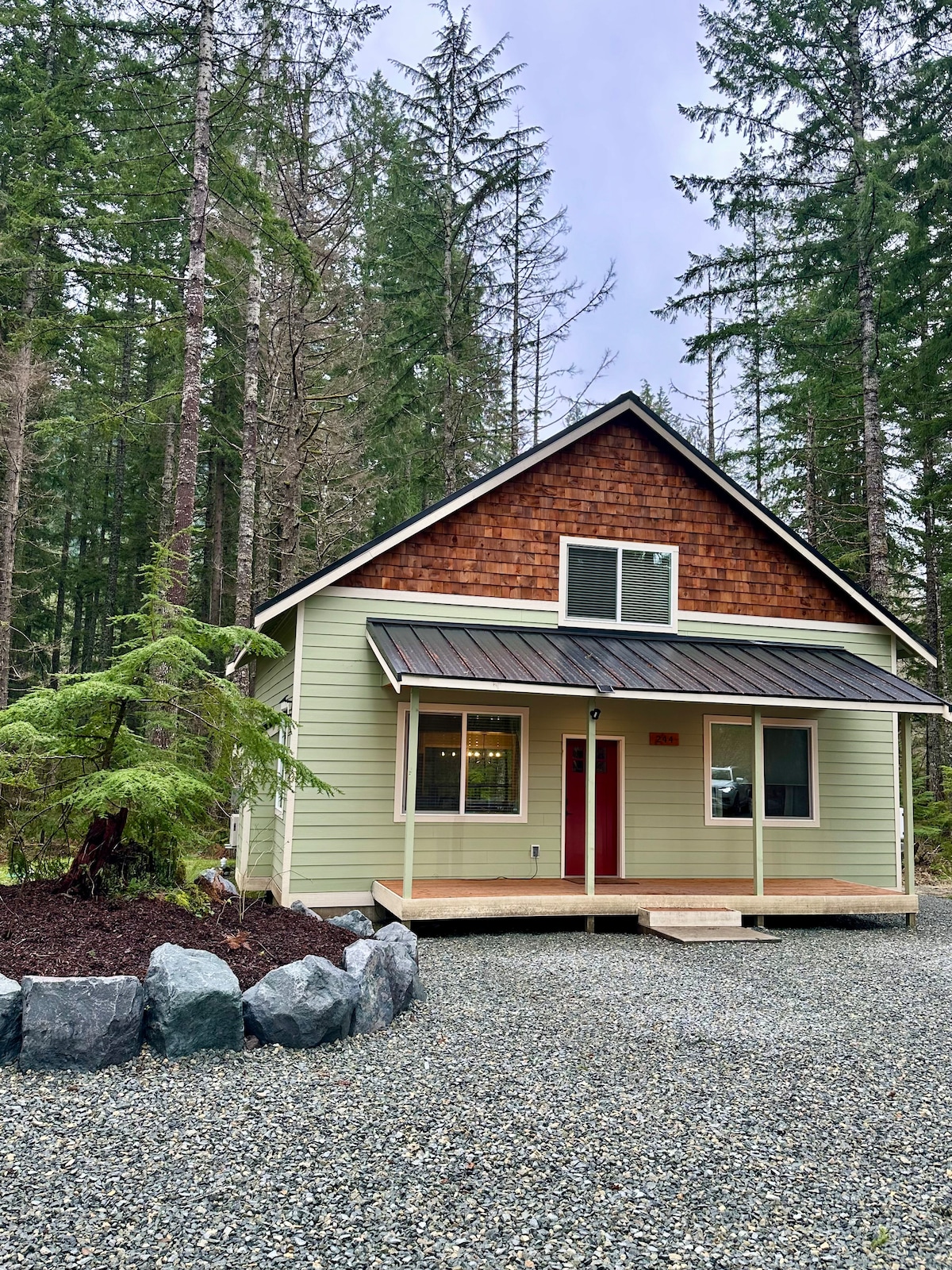 Relax with the whole group at this peaceful mountain retreat. Perfect vacation home for all seasons with hot tub, EV charger, wood stove and large deck with grill. Enjoy the giant yard, firepit, hammock and yard games. Dog friendly and less than a 10 minute walk to the Nisqually River Basin, and a 5 minute drive to the entrance of Mt. Rainier. Enjoy the starry nights with plenty of space to spread out. Surrounded by world-class hiking near the peaceful village of Ashford, Washington. Enjoy!
