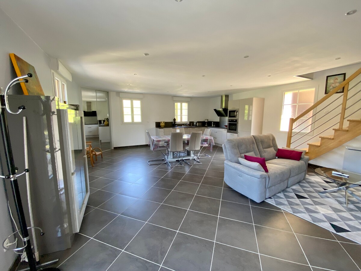 コクーニング・アティチュードを身につけましょう ソンム湾の中心部に位置する、とても美しく本格的で温かくデザイン性の高いアパートです。 リネン類とタオルが用意されています。ペット1匹につき50ユーロの追加料金がかかります。🐾🐶 忘れずに申告してください。😜 この120平方メートルの完全に改装されたコテージは、非常に美しいボリュームと、アザラシの行き来が見える湾のパノラマビューを提供します。商店街と市場のすぐそばに位置しているので、車を停めて散歩するだけです。