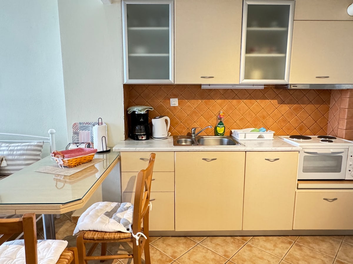 アンドロス島の首都にある美しい宿泊施設です。2つの寝室、リビングルーム、キッチン、バスルーム、そして果てしない青の素晴らしい景色を楽しめます。 家はホラの旧市街にあり、主要な歩行者ストリーのすぐ後ろにあり、すべてのショップや博物館がわずか数分です。 バス停までわずか7分です。 アギア・タラシーニの青緑色の海の上にある宿泊施設の景色は、島での滞在をユニークなものにするのに十分です。
