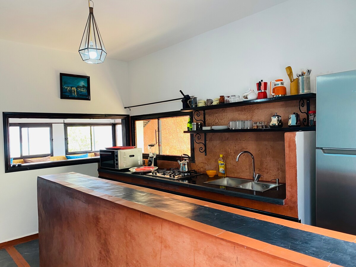 モロッコでの快適な滞在に理想的な、温かく明るいアパート。最大4名様までお迎えし、整理整頓されたスペース、居心地の良いリビングルーム、設備の整ったキッチン、Wi-Fiをご利用いただけます。観光の後にリラックスするのに最適です。