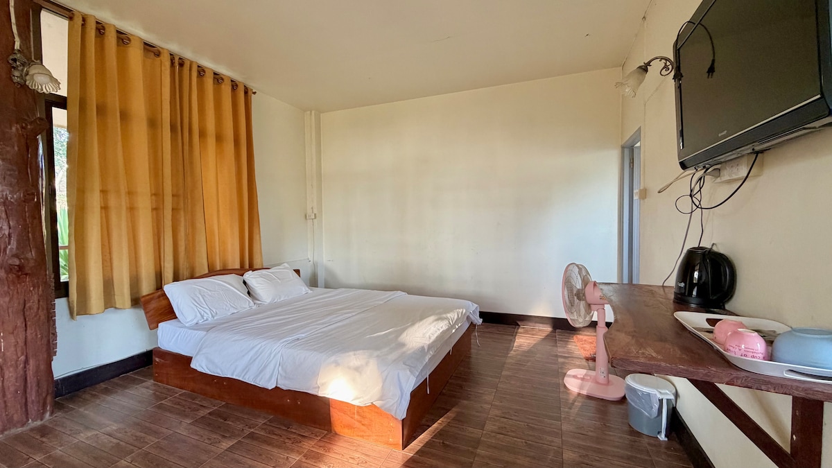 ロケーションは山の周りで、丘の部族の村や滝にとても近いです。 農場内では、1985年からライチの木を栽培しています。 魚や鶏にも餌をやっています。 農場はとても平和で、休息とリラックスに最適です。また、空港に近く、車でわずか20 ~ 25分です。 空港または市内のバス停までの送迎を手配することができます。また、チェンライでの日帰り旅行を手配することもできます。 Wi-Fiと自転車を提供しており、村の周辺をサイクリングできます。