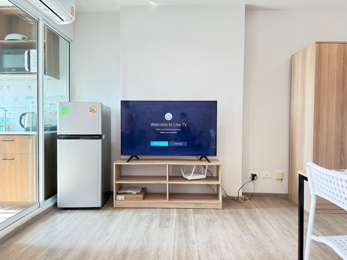 A 26square metres room at condominium, 50 metres away from MRT Wongsawang. The room with 1bed , fully furnished with 1air conditioners in bedroom and living room , television, microwave and refrigerator. The swimming pool, fitness room are provided with free of charge. 7-11 shop is next to the condominium and 5-10 mins walk to BigC department store and fresh food market. 10-15 mins from JJ weekend market Fitness 5 floor Swimming 5 floor