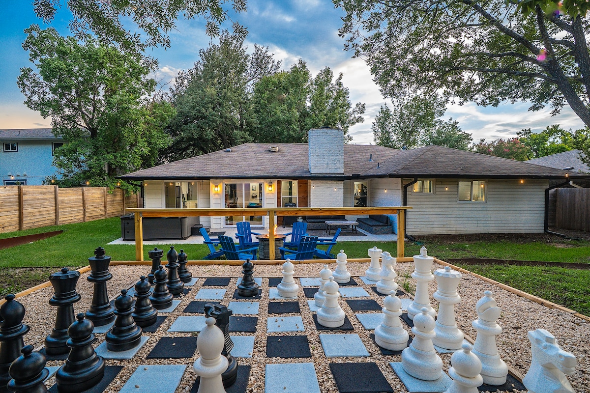 オースティンの隠れ家でジャグジー、焚き火、巨大チェスを楽しもう