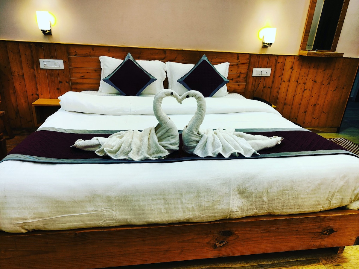 ヒマラヤ山脈の景色を望む魅力的なホテルの寝室