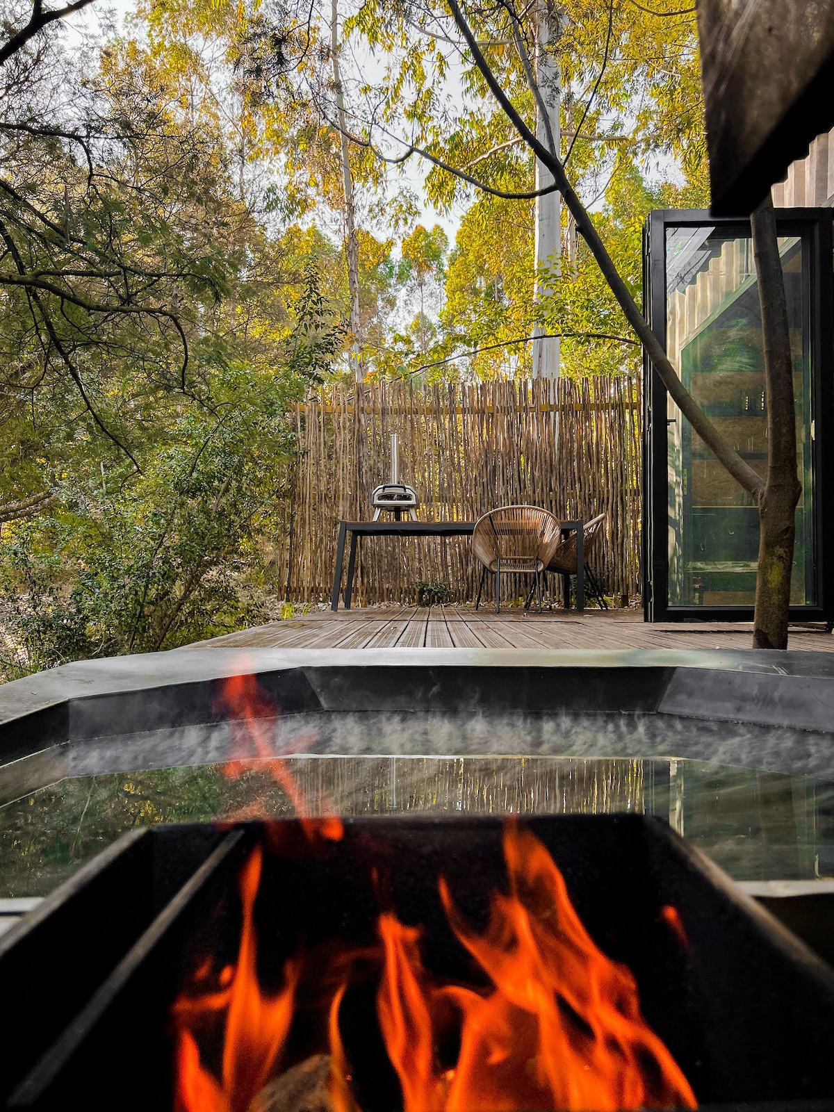 デッキと専用庭園を備えた静かで豪華なコテージ