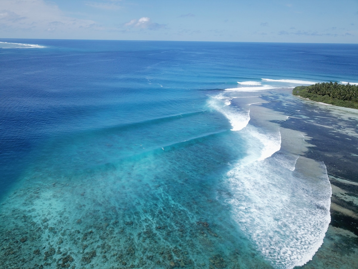 混雑していないサーフィンをお探しですか?2つの右波サーフブレイクまで徒歩ですぐです。またはボートでチャンネルを渡ってF1のサーフポイントやその他のサーフポイントに行くこともできます。地元のサーファーはフレンドリーで歓迎してくれます。この宿泊施設は、美しく清潔な海に囲まれた地元の漁業島ムラ島にあり、魚やウミガメがたくさんいるシュノーケリングに最適なロケーションです。または、埠頭に座って釣りをするか、ボートを手配してさまざまな種類の魚を捕ることもできます。