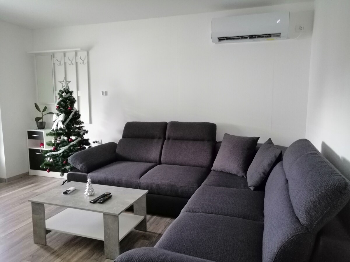 80平方メートルの広いアパートで、最大4名様までご宿泊いただけますが、必要に応じて折りたたみベッドを追加でご用意いたします。 設備の整ったキッチン、広々としたリビングルーム、ダブルベッド1部屋、シングルベッド2台の部屋、バスルーム、テラスを完備しています。 家の目の前に3台までの無料駐車場があります。 アパートは、お子様連れのご家族、カップル、友達グループ、出張者、一人旅の冒険者に適しています。