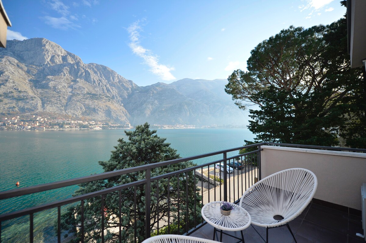 ベッドから一歩出ると、ボカ湾の美しさが目の前に広がります。 朝のコーヒーを海辺のバルコニーで飲み、山と海の風景が組み合わさったシュールな景色をお楽しみください。 その後、階下に向かい、日光浴用の桟橋から海に飛び込みましょう。 ようこそ。コトルを思いっきりお楽しみください。