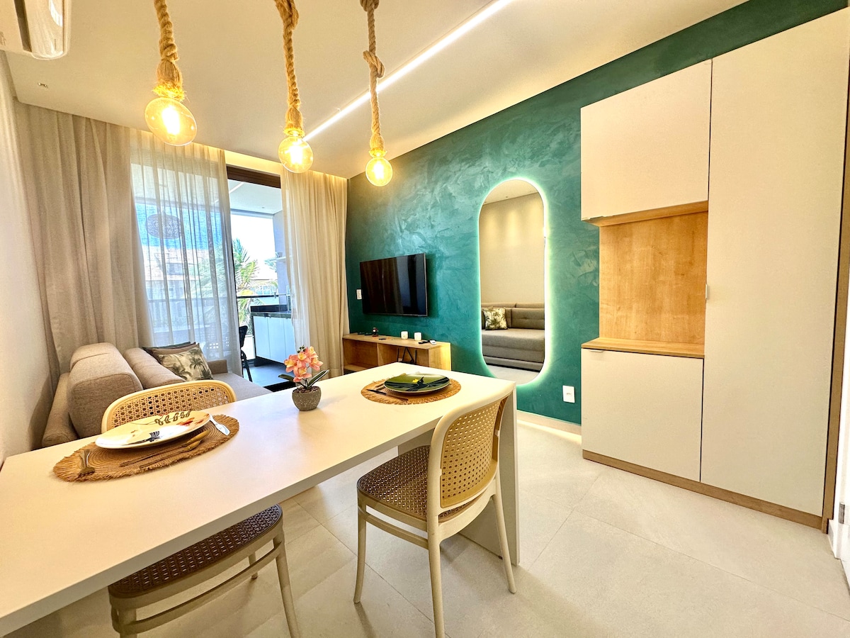 こんにちは!当社のフラットは、海辺に位置するビーチクラスムーロアルトリゾートにあり、3,200平方メートルのアメリカ最大のプールの1つ、2つのレストラン、スパ、コンビニ、ランドリーなどを備えています。 フラットには2部屋あり、6名様が快適にご宿泊いただけます。ダブルベッド2台とソファベッド(ダブル)1台があり、すべてのお部屋にエアコンと無料ストリーミング付き4Kテレビ、バルコニー、設備の整ったキッチン、ダイニングテーブルが備わっています。 ムーロ・アルト・ビーチはブラジルで最も美しいビーチの1つです。