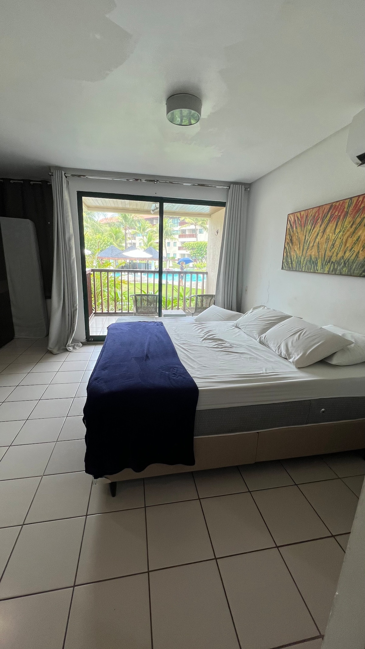 Studio no Marulhos Suites Resort. Cama queen, bicama, colchão extra, ar condicionado, internet boa e smart tv. A cozinha conta com geladeira, Gelágua, cafeteira, sanduicheira e os demais utensílios de cozinha. Apto aconchegante de frente para as piscinas. O hotel é de primeira, conta com várias piscinas, sauna, academia, campos de futebol e tênis, área de jogos e recreação todos os dias para a criançada. Ja tenho alguns anos alugando esse e outros flats em muro alto, então pode confiar!
