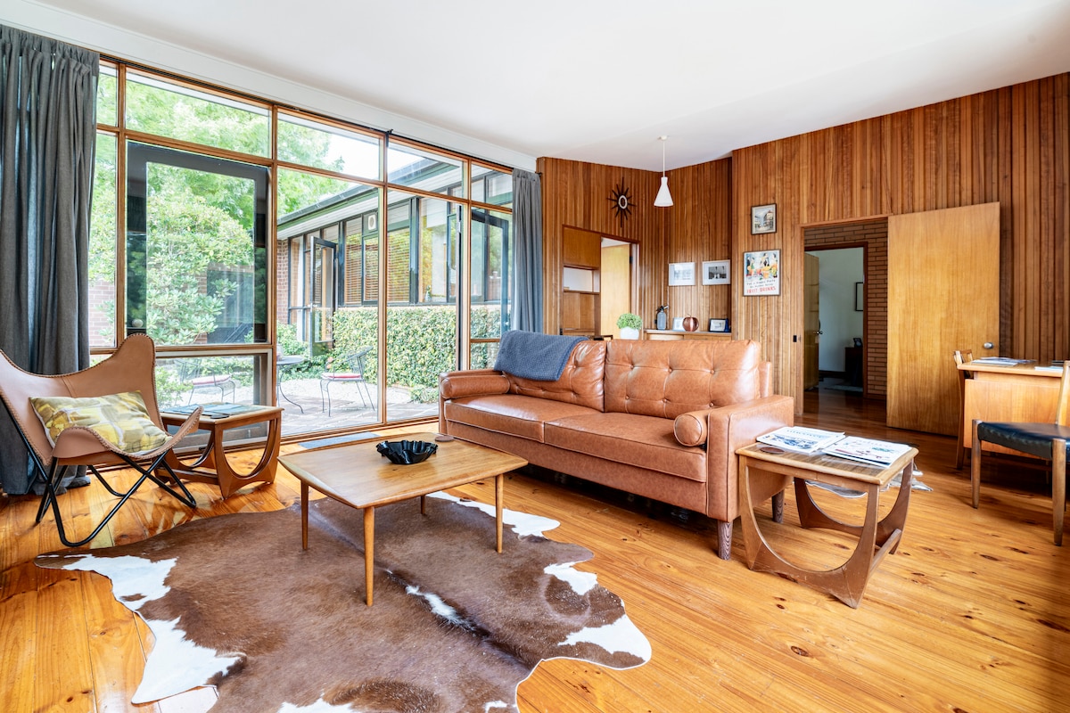 丘の上にあるこの家では、窓から街を一望できる景色を眺めながら、過去にタイムスリップできます。 裸のレンガと天然木材の広範な使用が、ミッドセンチュリーの雰囲気を保ち、全体にわたる時代の家具と輝く軟材の床がそれを際立たせています。 ハウスマニュアルには、私たちが自分たちの家を「ジャックス」と呼ぶことについての情報が記載されています。 ペット同伴のゲストは受け入れておりません。また、家の中や敷地内での喫煙は禁止されています。 これらのルールが気に入らない場合は、予約しないでください。 Jack's Placeは、1960年代の建築家が設計したオリジナルの家です。 バスルームに直接アクセスできるマスターベッドルーム(唯一のバスルームです!)。 2つ目の寝室には、ジャラフローリングとむき出しのレンガの壁があります。 リビングエリアからは、特に夜間には街全体のユニークな景色が楽しめます。 機能的なキッチンとランドリー、エアコンと暖房。 貸し出し条件は家全体ですが、カップルが予約した場合は、寝室は1部屋のみとなります。 予約時に、両方の寝室が必要かどうかを明確にすることをおすすめします。 そうでなければ、2つ目のベッドは用意しません。 Jack's Placeは、専用の駐車スペースを備えた一戸建てのレンガ造りの住宅です。 壁のある中庭と正面に芝生エリア/庭(まだ完全に整備されていません)があります。 Cateと私はJack's Placeの裏に住んでおり、両方の物件は車道を共有しています。 当然、私道は常にきれいに保たれなければなりません。 バララット全般、食べ物、ワイン、アクティビティに関するご質問があれば、お気軽にお問い合わせください。 この1962年の家は、メルボルンの西約125キロメートルにあるバララット市の古い地区、ゴールデンポイントにあります。 最近では、この地域の建築は1860年代の住居、カリフォルニアバンガロー、近代的な高密度住宅など様々です。 バララットのメインストリートはスタート通りです。 町の中心部まで徒歩約10分、大手スーパーマーケットまではさらに近いです。 町の駐車場は1週間中メーターで料金がかかります。 中央ビジネス地区の端には無料駐車場があります。 アームストロング通りのレストラン街周辺に駐車するのは難しいです。 夕食は徒歩で行き、Uberで帰宅することをおすすめします。 地元のバスはわかりにくいです。 わずか数分先には、フレンドリーで信頼できるThe Grapes Hotelがあります。 バララットの天気は変わりやすいことがあります。 天気は私にはコントロールできません! 海抜約375メートルの場所にあり、冬は寒く、夏は暑いです。 夏の夜は涼しくなる傾向があります。 家を暖かく快適に保つために、ブラインドを閉めて暖房をつけてください。 家の中には電気パネルヒーターがあります。 小さなお子様がいる場合は、ご利用には適していないことにご注意ください。 家を涼しくするには、ブラインドを引き、すべての窓と不要なドアを閉め、外気温度より10℃低く設定してください。