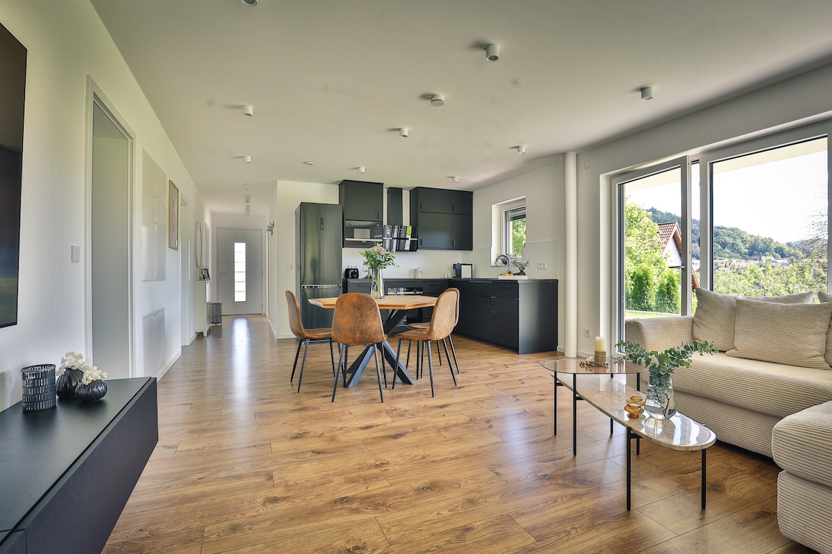 モダンなデザインの木造住宅で、ブドウ園の美しい景色とレムスタールの眺望が楽しめます。アパートは一戸建ての1階にあり、外から別の玄関があります。シュトゥットガルト中心部まで車で15分、Sバーンで20分。 宿泊施設 アパートは高品質の設備を備えています。オープンキッチン、リビング、ダイニングエリア。とても広い屋外テラスがあります。アパートのすべての設備が揃っています