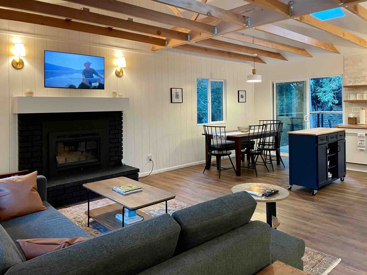 内装は全面改装済み、新しく塗装され、キングベッドを含む内外の新しい家具が備わっています。 新しく設置されたテスラJ1772ウォール充電器-テスラ車を含むすべてのEVSと互換性があります。 レインボーハウスには、のどかな田舎の隠れ家で逃避してリラックスするために必要なものがすべて揃っています。 典型的なカリフォルニアのモダンなファームハウスの美しいインテリアデザインは、オープンプランのリビング、心のこもった隅々、集まる場所、最高の屋内/屋外リビングを最大限に活用しています。