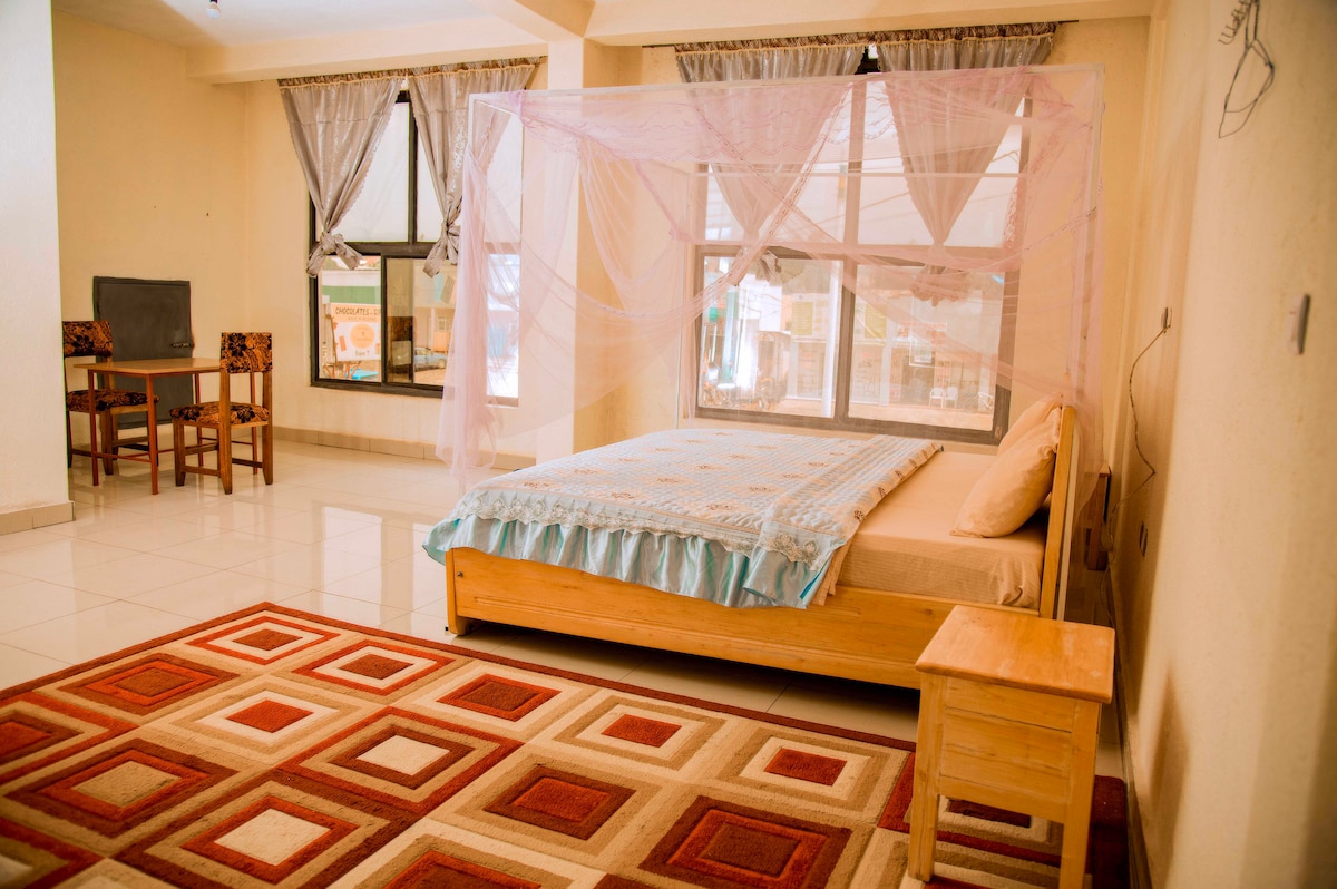 快適な宿泊施設:ムサンゼにあるUnder Volcanoes View Guest Houseでは、専用バスルーム、バルコニー、庭園の景色を楽しめるファミリールームを提供しています。各客室には、作業用デスク、テレビ、無料Wi-Fiが備わっています。 お食事とレジャー:お客様は、地元の名物料理、ランチ、そしてディナーを提供するレストランをお楽しみいただけます。バーではリラックスした雰囲気を楽しめ、テラスと屋外の暖炉では屋外でのお食事をお楽しみいただけます。 アメニティ・設備とサービス:このゲストハウスには、庭、テラス、レストラン、バー、無料Wi-Fiが備わっています。その他のサービスには、シャトル、24時間対応のフロントデスク、エンターテインメントスタッフ、ミニマーケット、ランドリーサービスなどがあります。 アクティビティと立地:このゲストハウスはムサンゼにあり、火山国立公園やムサンゼ・キニギ空港などの観光スポットの近くに位置しています。アクティビティには、サイクリングやライブミュージックが含まれます。