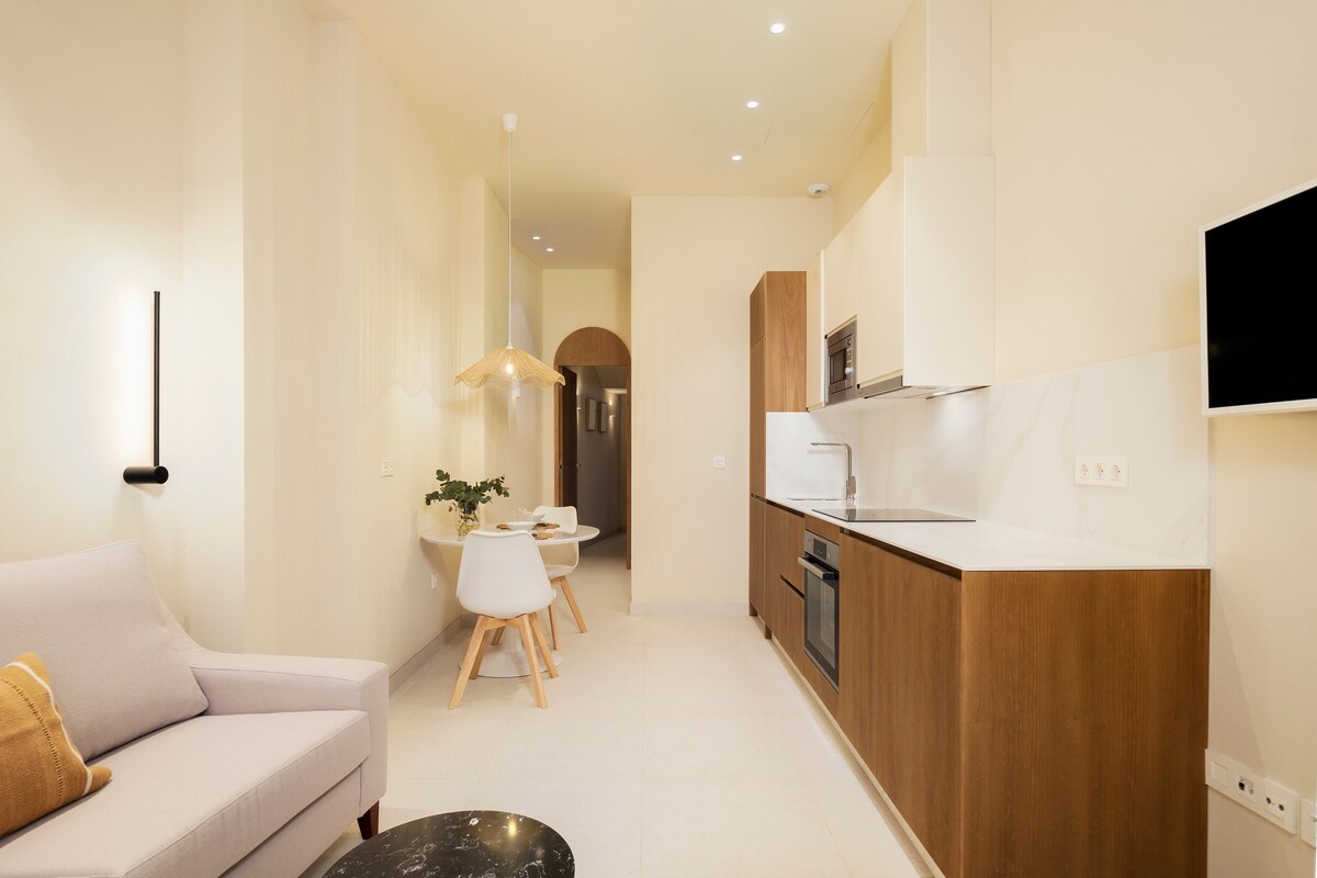 快適でモダンな2ベッドルーム/2バスルームのアパートに滞在し、マラガの地元の人のように暮らしましょう。 レストラン、バー、美術館、ショップまで徒歩圏内です。 裏にはヒブラルファロ山があり、すぐ近くにはメルセス広場があり、マラゲタビーチまでわずか1 kmです。マラガを探索するのに理想的な拠点です。 街を楽しみながら夜も休めたいご家族やご友人同士に最適です。