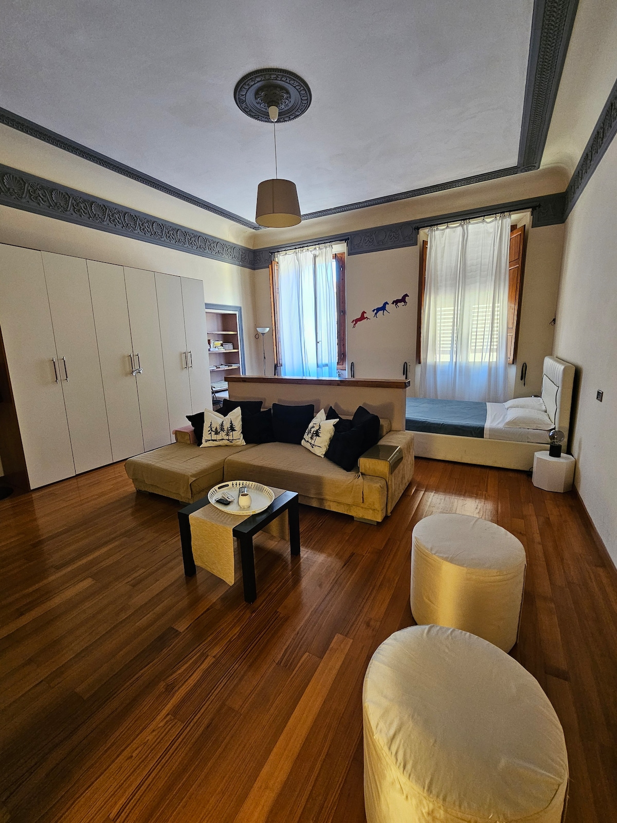 フィレンツェ中心部の素晴らしいPalazzo Buondelmontiの最上階にあるエレガントなワンルームアパートへようこそ。この歴史的な建物は、アンティークなパラッツォの雰囲気、息をのむような景色、中心部に位置しており、フィレンツェでの体験に最適な隠れ家です。