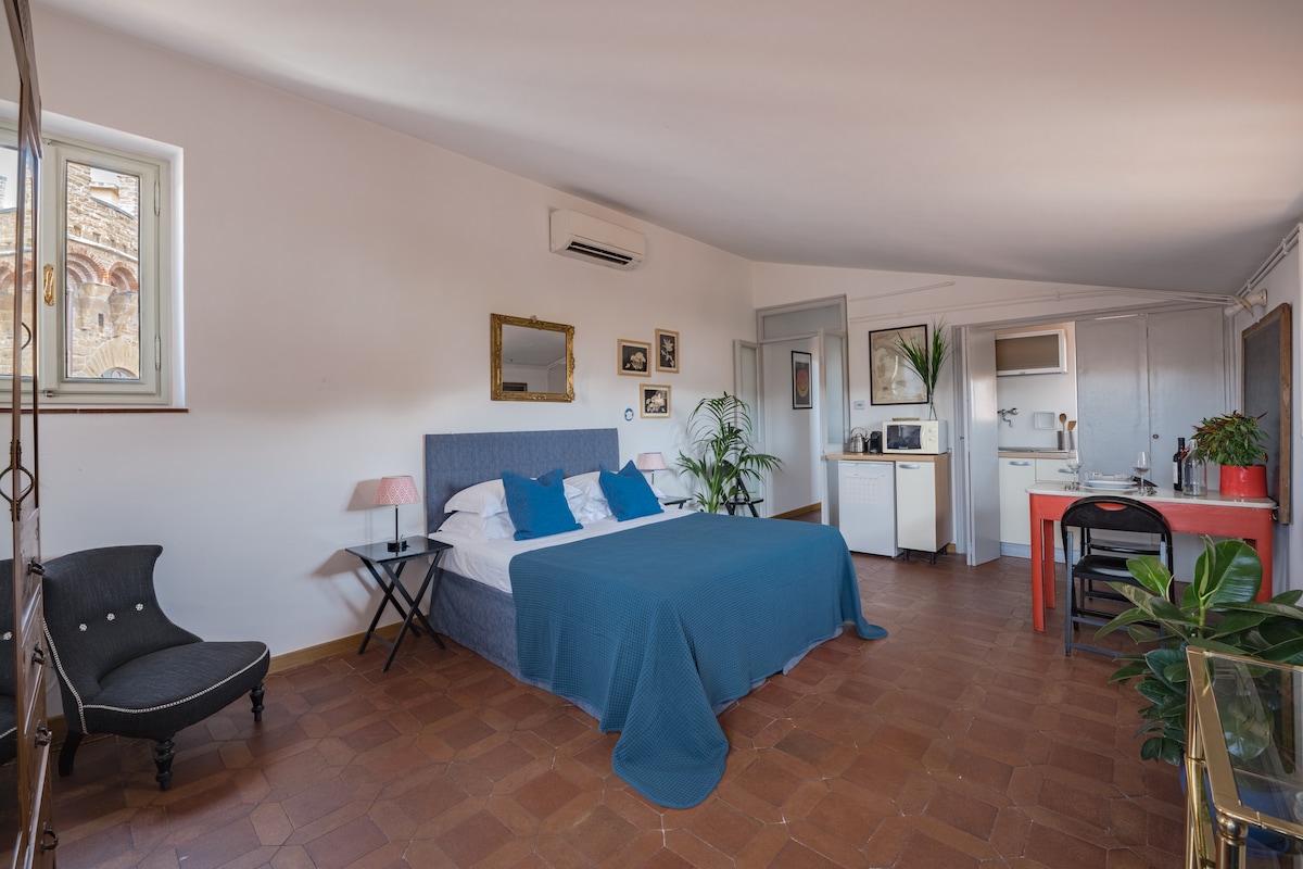 「ラファエロ」 – カルツァイウオーリ通りにある歴史的建造物の2階に位置する、30㎡のエレガントなスタジオでフィレンツェの魅力をご体験ください。ドゥオーモからすぐのロケーションです。テーブル、椅子、パラソルを備えた、他に類を見ない35㎡のプライベート屋外テラスは、四季折々の街の眺望を楽しみながら、ゆったりとおくつろぎいただける特別な空間です。エアコン、セントラルヒーティング、エレベーターを完備し、フィレンツェ中心部で一年を通して快適で便利な滞在をお約束します。