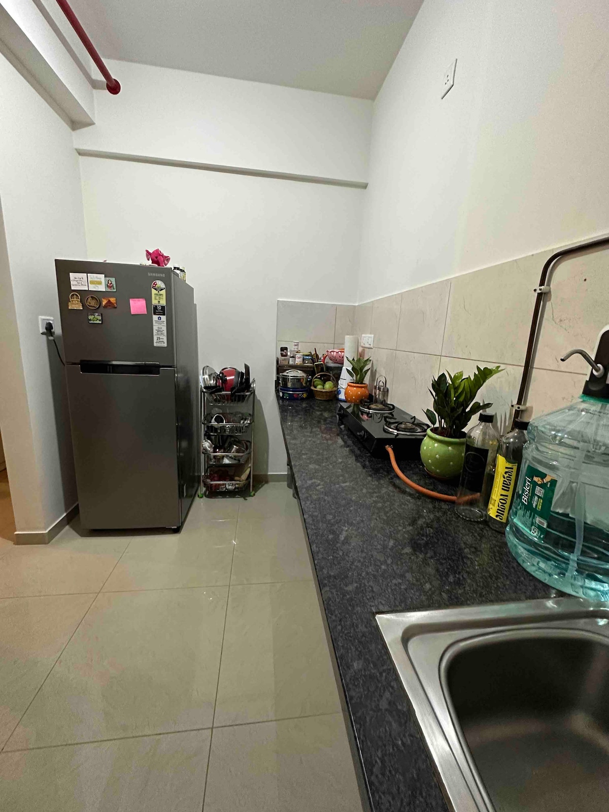Bring the whole family to this great place with lots of room for fun. • Fully furnished 1 BHK apartment • Comfortable queen-size bed and clean linens • Attached bathroom with hot water • Living area with sofa and TV • Kitchen with basic utensils, stove, and fridge • High-speed Wi-Fi (100 Mbps) • Washing machine access • 24/7 water and power backup • Cleaning service available