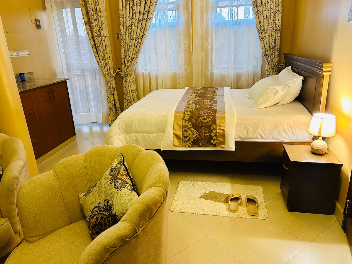 快適な1ベッドルームのMuyenga、クイーンベッド、朝食、温水シャワー