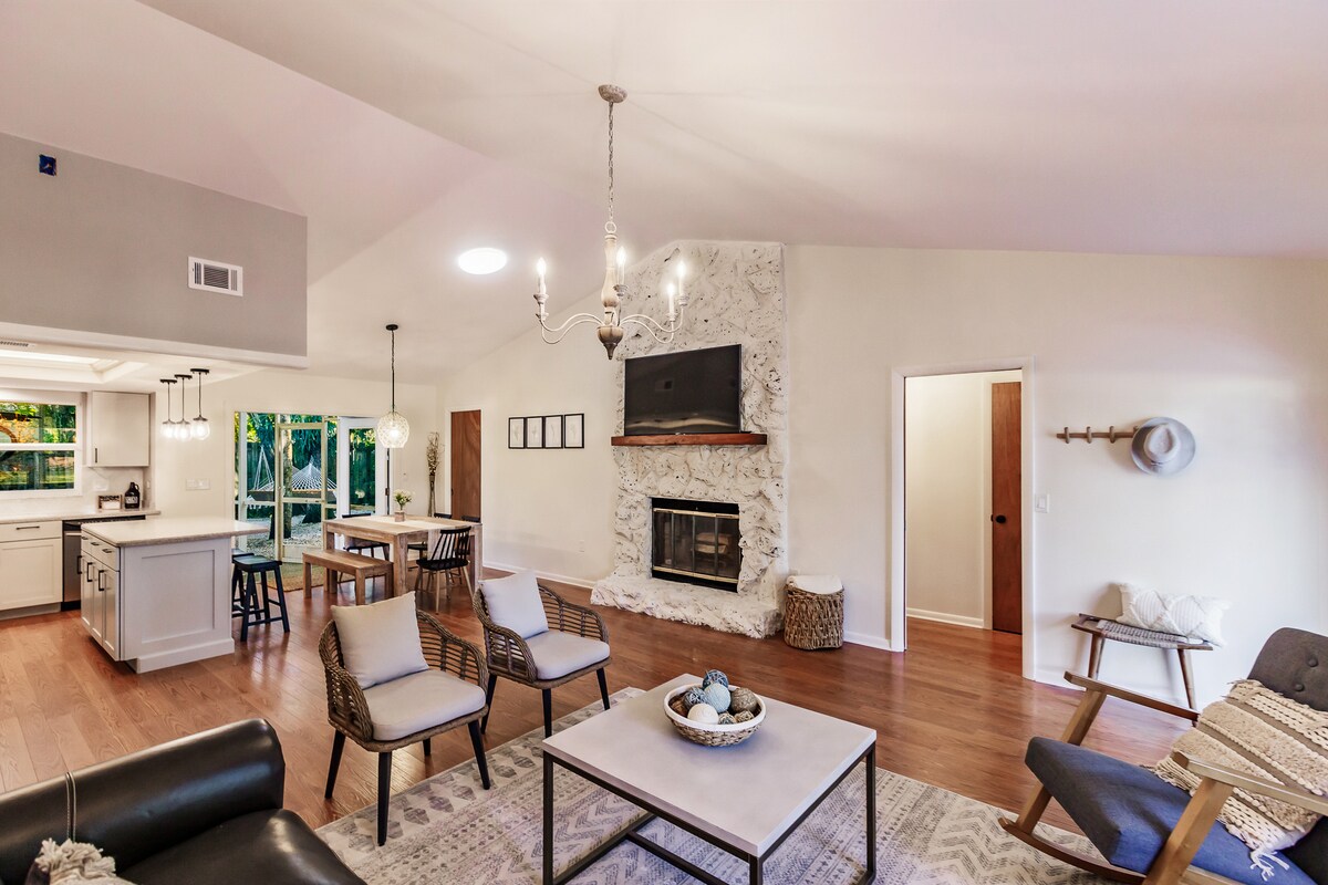Experience comfort and style in this charming, pet-friendly space, perfect for short getaways. Enjoy the privacy of your own entrance, along with a full shower, cozy living room, dining area, and bedroom, all within one convenient layout. The fully fenced backyard, shared with other tenants, features a grill and fire pit—ideal for relaxing evenings outdoors. While the space includes a kitchenette, access to the main shared house may be available if you need a full kitchen or laundry facilities.