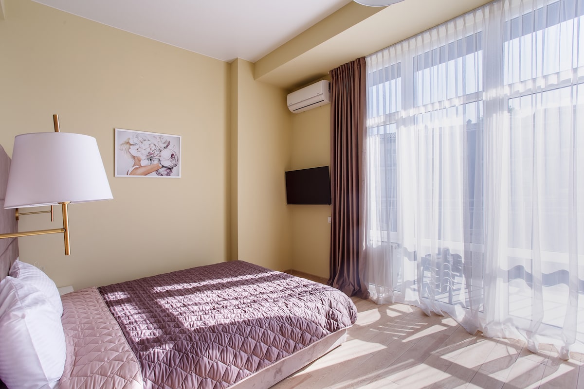 海まで徒歩圏内にある総面積35平方メートルのホテルのスタイリッシュな客室。プール、ジム、警備の行き届いたエリアがあります。広々としたリビングルーム、バスルーム。中庭とガレージに駐車スペースがあります。 レヴァネフスキー通りにあるプレミアムクラスの高級ホテルでの休暇をお勧めします。レヴァネフスキー通りにあり、市内で最も高級な地区の一つです。客室数が少ないことで、現代的な新しい建物の中で際立っています。