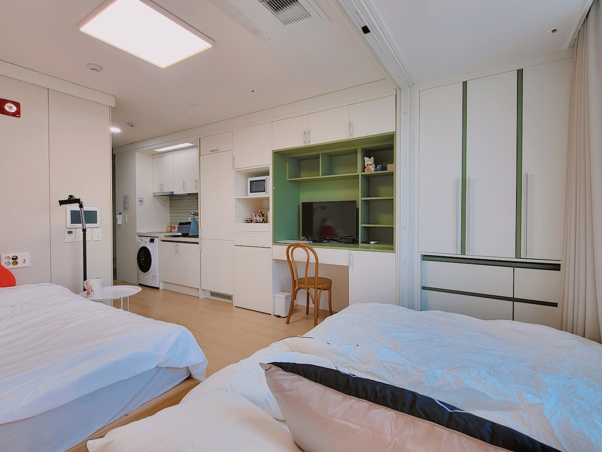 *宿泊施設の利点 - 冷蔵庫、洗濯機、キッチン、クローゼット、エアコン、空気清浄機などがフルオプションで 設備の整ったスタジオ型の宿泊施設 - Netflix、Disney Plus、YouTubeが視聴可能 - 無料Wi-Fi - 3号線南富田ミナル駅徒歩6分 - 空港バス停まで徒歩4分 - スターバックス3店舗徒歩10分以内 - 芸術の殿堂、国立国楽院などの文化公演展示場まで徒歩10分以内 -江南駅、ガロス通り、アプクチョンなどのホットプレイス地下鉄15分以内 - 光化門、鐘路、景福宮など地下鉄3号線で結ばれています *備品 -マグカップ、ワイングラス、ガラスコップ - ワインオープナー - 鍋、フライパン - 電気ケトル、トースター - ナイフ、まな板、調理器具 - 箸、お椀、お皿 - 電子レンジ/インダクション - シャンプー/リンス/ボディウォッシュ - ヘアドライヤー - タオル ※注意事前のご注意 - チェックインは午後3時/ チェックアウトは午前11時 - 建物内の「有料」駐車場 - 屋内禁煙、臭いの強い食品の調理は不可 - 定員を超える場合やペット同伴の場合は退室措置