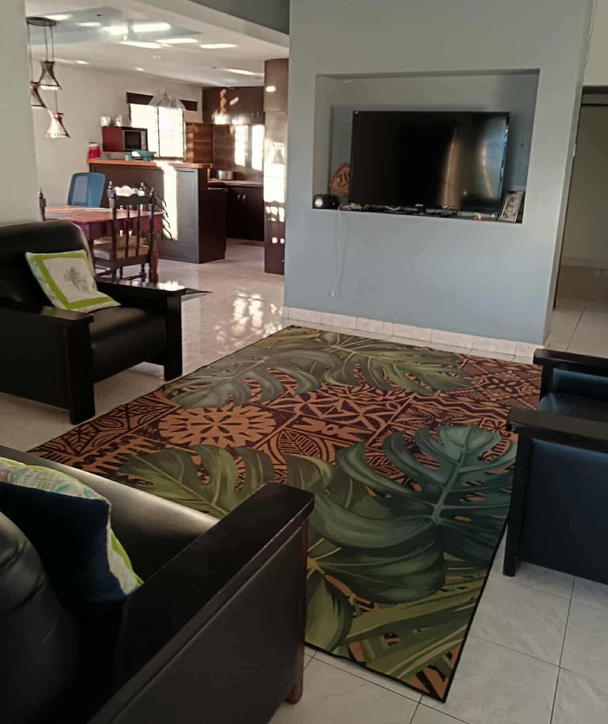 フィジー島ナディのボツアレブにある広々とした3ベッドルーム、3バスルームのリトリートへようこそ。 各部屋にクイーンベッドとエアコンがあります。 空港から車でわずか5分の場所にあり、デナラウとワイロアロアビーチへのアクセスに最適です。 広々としたリビングルームでくつろぎながら、スリーピングジャイアントの息をのむような景色をお楽しみください。 当宿泊施設には、お湯が出るレインシャワー、STARTLINK Wi-Fi、無料駐車場があり、便利です。 こちらでの滞在をご予約ください。フィジーの最高の体験をお楽しみください。
