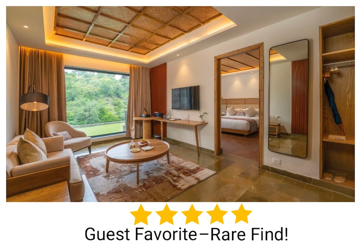 Note: ☝️ Click on “Show Original” above ⬆️ to see 👀 the correct information. ☞ Nestled in the scenic Aravalli Hills of Rajasthan, this premium resort offers serene, modern rooms with smart Alexa systems and stunning views. Enjoy the infinity pool, spa, sauna, jacuzzi, fitness center, yoga classes, and kids’ clubhouse. With free Wi-Fi, parking, and exquisite dining, it’s close to Kumbhalgarh Fort and Ranakpur Temple—perfect for a relaxing, memorable stay.