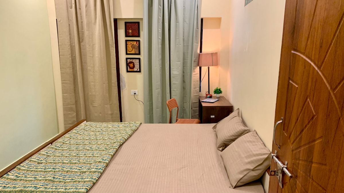 プラヤーガラージにある豪華でファミリー向けの家へようこそ。家具付きのお部屋で、本物のインドの家族の快適さを味わえます。広々としたベッドルーム3室、リビングルーム1室、テレビユニット付きの大きなロビー、トイレ付きのバスルーム1室、インド式の洗面所があります。二輪車用の駐車場があり、四輪車は外の道路に駐車できます。庭で夕茶を楽しむことができます。 大人6名様とお子様が宿泊可能です。 チェックインとチェックアウトの時間を厳守してください。