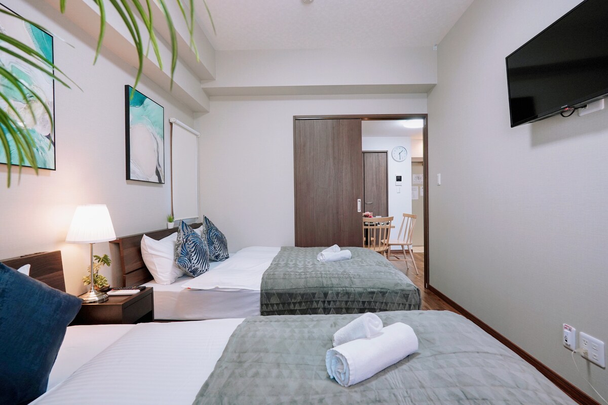 ①こんにちは、ホストのBiです。私のAirbnbへようこそ。日本の旅行宿泊は私たちにお任せください。 私もスタッフと24時間オンラインですので、部屋に問題がある場合や物品が不足している場合、スタッフがすぐに対応いたします。 ご旅行中にご不明な点がございましたら、スタッフまでお申し付けください。旅のお困りごとを迅速に解決いたします。 私のAirbnbが、安全で安心で清潔で素敵な旅の思い出と良いサービスをお届けできることを願っています ②お部屋は大阪市のグルメの中心地、食いしん坊の楽園、黒門市場から徒歩2分です。日本橋地下鉄駅まで徒歩3分。 ③ 43m²の広々としたお部屋で、快適で楽しいお部屋です。 ④寝室にはダブルベッド2台、居間にはダイニングテーブル1台があり、2名から4名のお客様に最適です。 「ダブルベッド* 2」 ⑤お部屋の洗面用具はすべて有名ブランドです。 家電製品は松下ブランドを使用しています スリッパ、枕、掛け布団はすべて日本の家庭用品ブランドMUJI(無印良品)を使用しています。 ⑥海外旅行者の快適さも考慮しています。 「すべてのマットレスは高品質で、清掃チームがお部屋を清潔で整頓された状態に保ちます。」