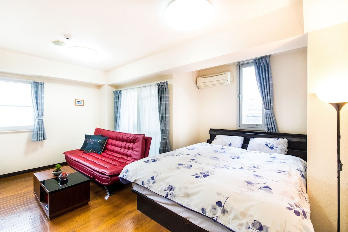 黒門2号店/ダブルベッド2台/最大4名/駅3分/黒門市場・道頓堀・なんばアニメストリート