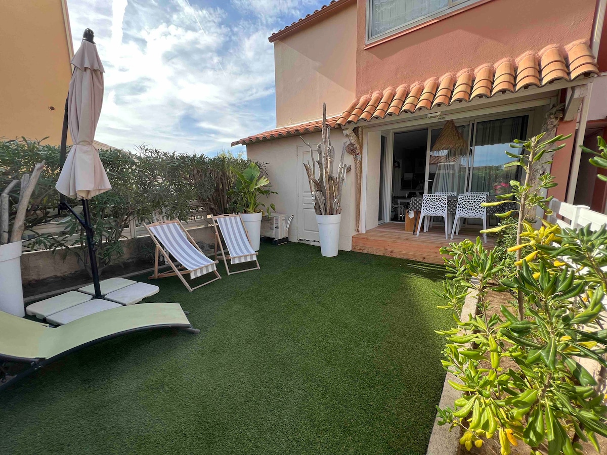 小さな庭、設備の整ったキッチン、洗濯機、食器洗い機、IHクッキングヒーター、電子レンジ、センセオコーヒーメーカー、ダブルベッドのある2つの寝室、2人掛けのソファベッドのあるリビングルームを備えた、34㎡のエアコン完備の改装済みアパート。 庭にはプランチャ、ガーデンテーブル、デッキチェアがあります。 ビーチから100メートル、ナルボンヌ・プラージュの中心部とすべての商店から5分